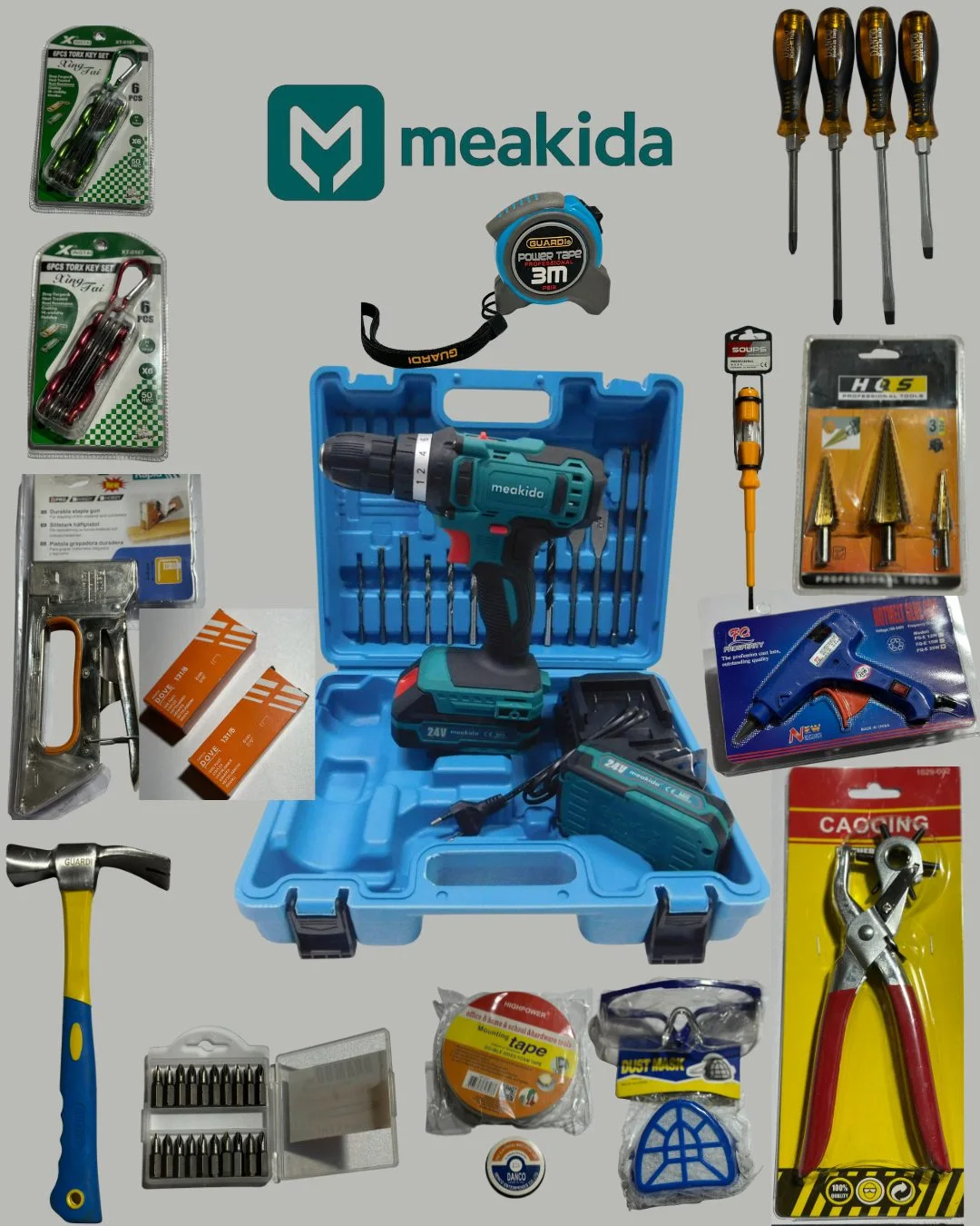 جمعنا فيه أهم الأدوات لي كتحتاج فالخدمة اليومية، مع Visseuse 24V قوية، باش تخدم بسرعة، دقة، وراحة، بلا ما تضيع الوقت ولا الفلوس فشراء أدوات متفرقة.